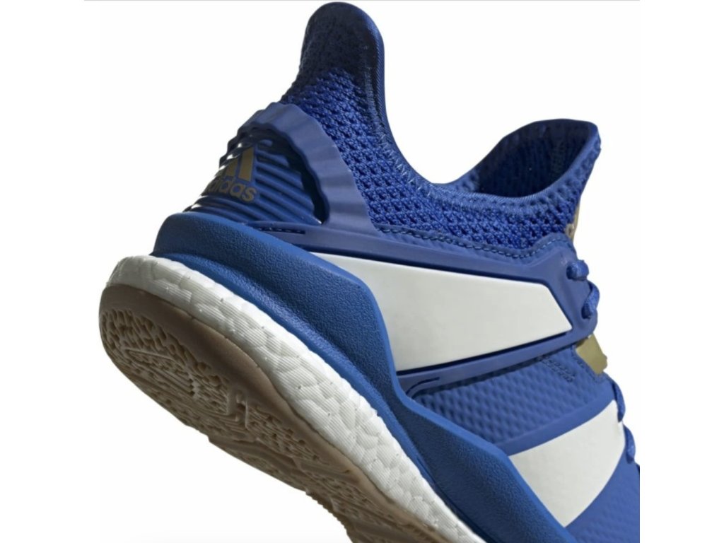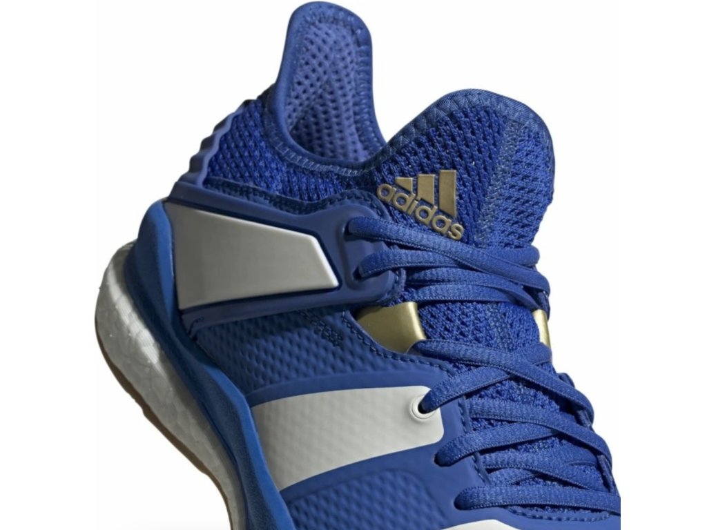 Buď připraven na cokoli. Tato házenkářská obuv ti umožní dosáhnout dynamické hry. Prodyšná vnitřní ponožka pohodlně zpevní nohu a výztuha obuvi ti umožní nastavit si utažení střední části nohy pomocí šněrování. Aktivní odpružení ti poskytne návratnost energie a podpoří tvoji hru. Pohodlná přiléhavá konstrukce Systém vnitřních pružných výztuh provázaný se šněrováním zpevní chodidlo tak, jak potřebuješ. Přiléhavá konstrukce příjemně obepne nohu. Nekonečná energie Boost je nejaktivnější odpružení, které jsme dosud vyrobili: čím více energie vydáš, tím více jí dostaneš zpět. Odolnost a zpevnění Zpevnění z TPU je lehké a zaručí ti odolnost vůči poškození. Revoluční přilnavost Přilnavá gumová podešev Top Grip nabídne vynikající kontakt se všemi sálovými povrchy.